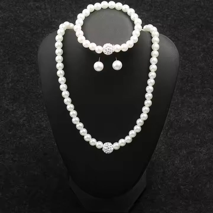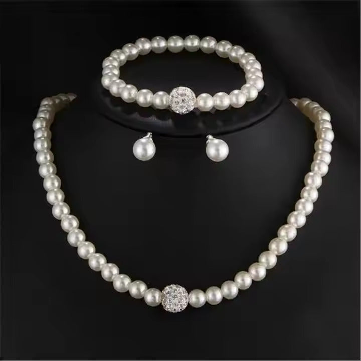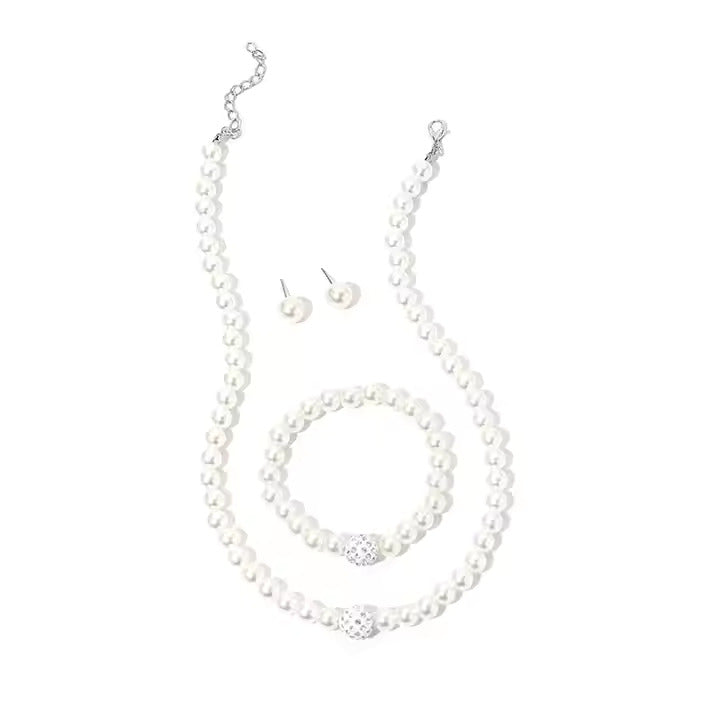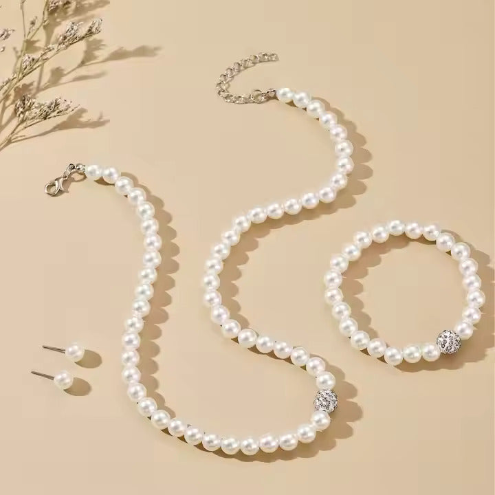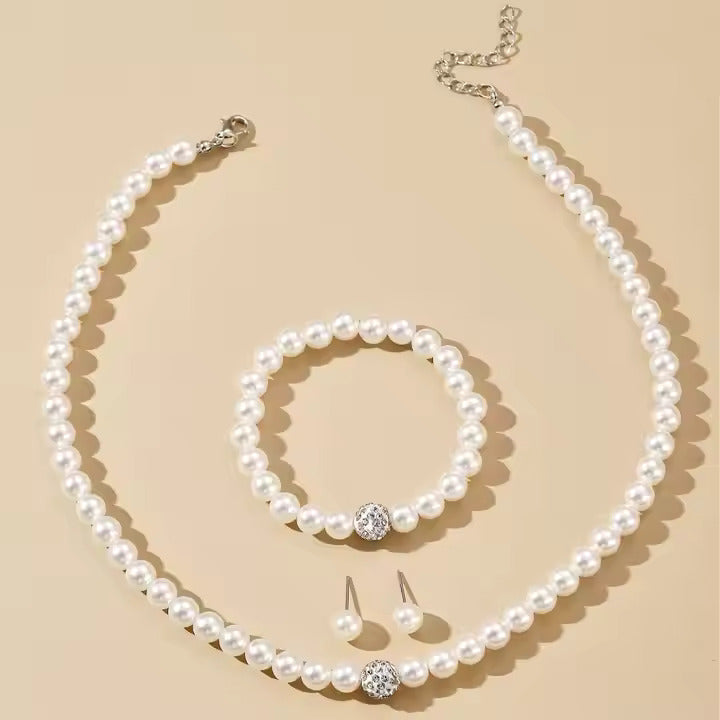 3-Piece Imitation Pearl Jewelry Set – Necklace, Earrings & Bracele